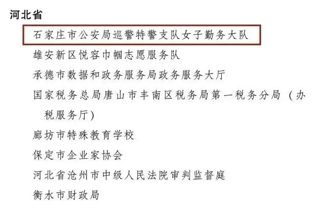 >喜报!石家庄市公安局巡警特警支队女子勤务大队荣获全国三八红旗集体!