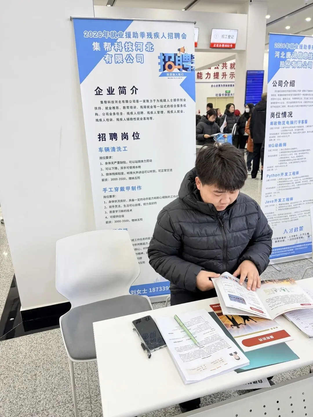 2月28日上午,以“春风送岗促就业 真情相助暖民心”为主题的石家庄市2026年春风行动暨就业援助季专场招聘会在石家庄灵活就业市场成功举办。集帮科技河北有限公司积极参加了此次招聘会,以实际行动为残疾朋友搭建就业桥梁,让每一份热爱劳动的初心都能落地生根。精准适配,岗位 “量身定制”