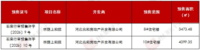 2026年第9周,石家庄新增预售许可证2个,由栾城区供应。