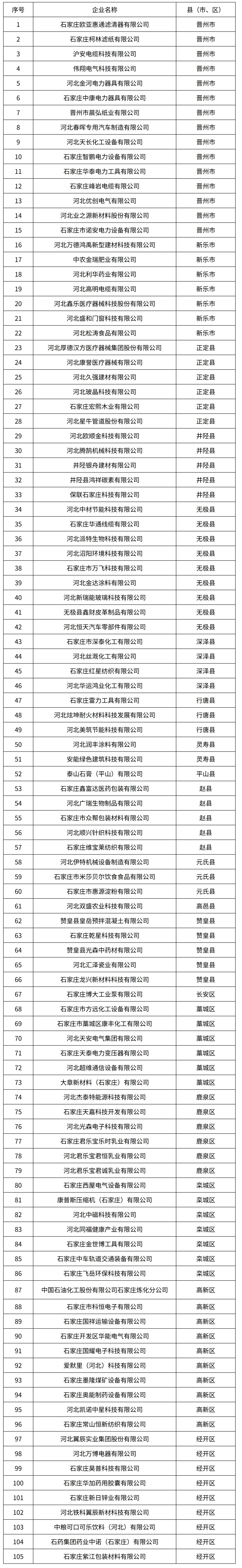 按照《工业和信息化部绿色工厂梯度培育及管理暂行办法》《河北省工业和信息化厅关于做好绿色工厂梯度培育和管理工作的通知》要求,我局组织开展了石家庄市第三批市级绿色工厂名单认定工作。经企业申报、各县(市、区)工信主管部门初审推荐、专家评审、相关市直部门审核,我局拟确定石家庄欧亚惠通滤清器有限公司等105家企业列入石家庄市第三批市级绿色工厂名单。现将该名单(见附件)进行公示,公示期5个工作日。欢迎社会各界参与监督,若有相关意见及建议,请于公示期内以实名和书面形式反馈。