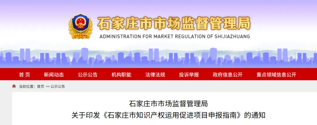 为做好知识产权运用促进项目申报工作,石家庄市市场监督管理局编制了《2026年度石家庄市知识产权运用促进项目申报指南》,现印发给你们。请按照指南要求,认真组织好项目申报工作。