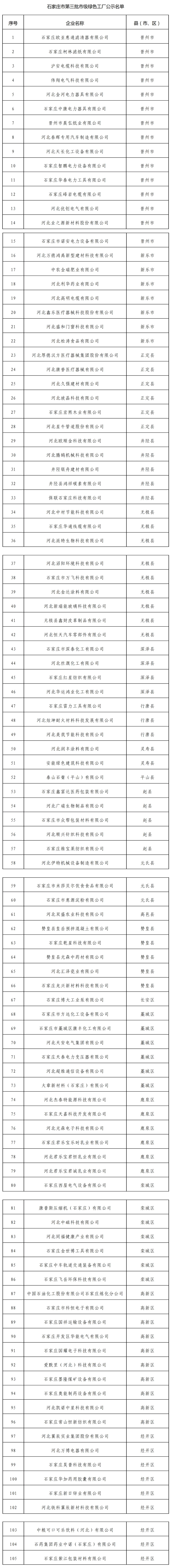 石家庄市工业和信息化局 关于第三批市级绿色工厂名单的公示