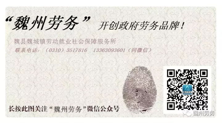 长按下面二维码,关注公众号“魏州劳务”获取更多劳务信息