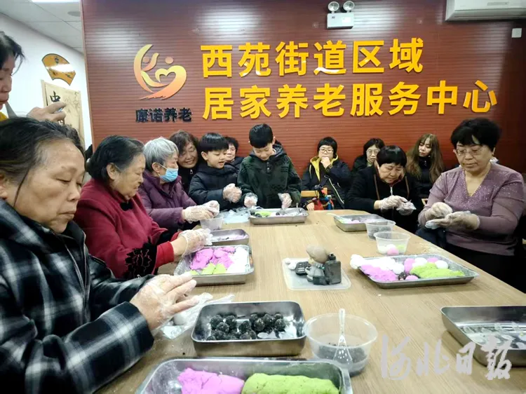 文艺汇演结束后,大家围坐在一起包汤圆,社区工作人员提前备好了糯米粉、馅料,居民们一边包汤圆一边谈趣事,揉面、包馅、搓圆,动作娴熟、配合默契,欢声笑语不断。