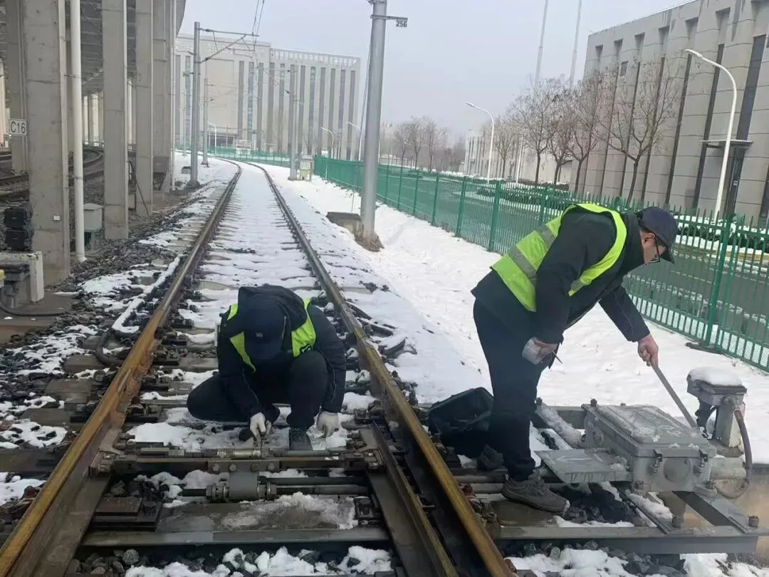 信号技工闻令而动、严阵以待,加密室外信号机、计轴、道岔转辙机等核心设备巡检频次,重点排查冰雪覆盖、低温卡滞、积水结冰等隐患,确保信号设备运行稳定、安全可靠。