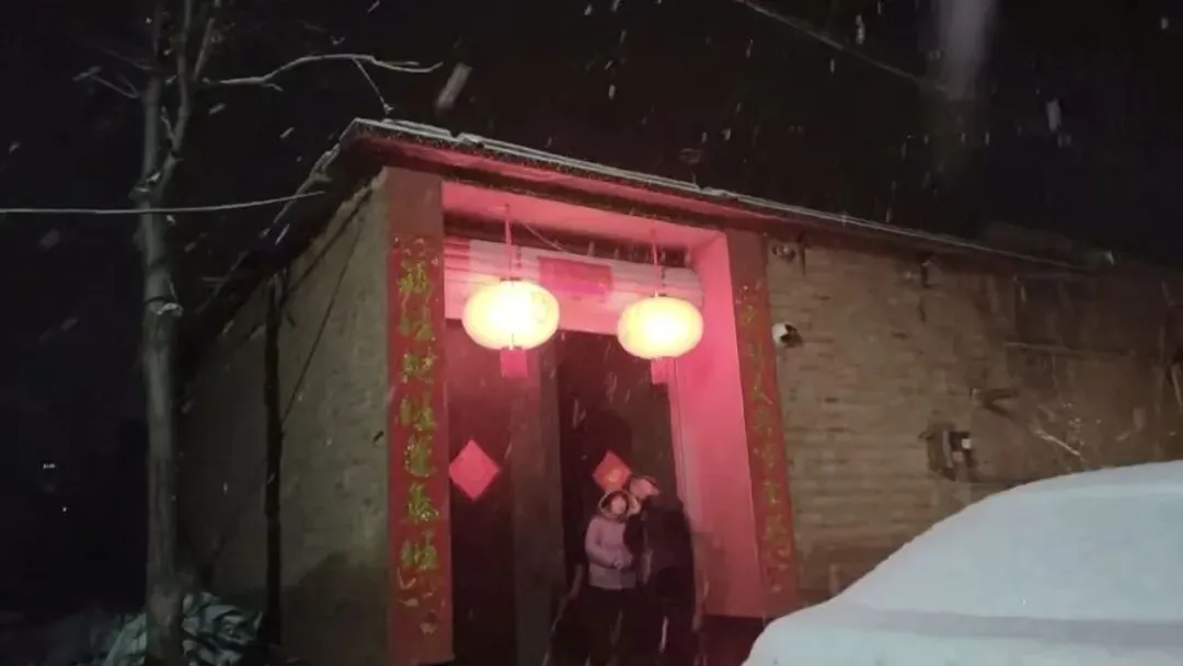 老爸举着手机,镜头对准漫天飘雪,老妈就那样仰着头,看着雪从看不见的高处落下来。