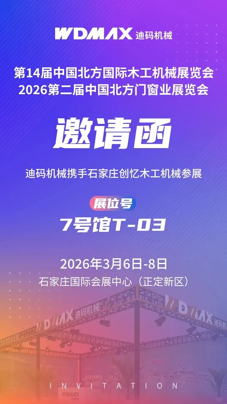三月的石家庄,商机涌动。值此行业盛会之际,迪码机械诚挚邀请您莅临展会现场,共赏智能装备盛宴,共探行业发展新机遇,共话板式家具智造新未来!