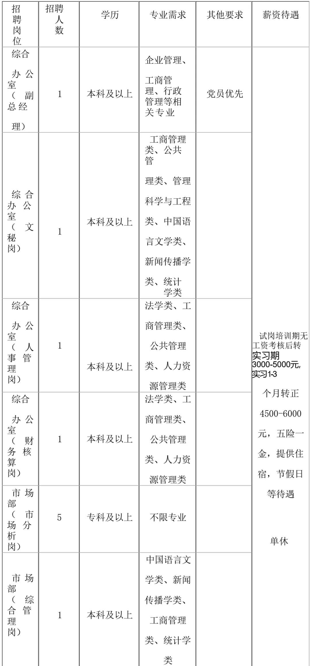 6.年龄一般为40周岁以下(副总经理45岁以下)。