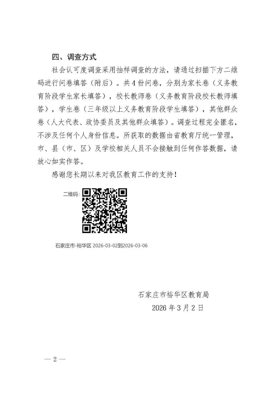 上大分!石家庄裕华区邀请全民填写【义务教育工作满意度问卷】!