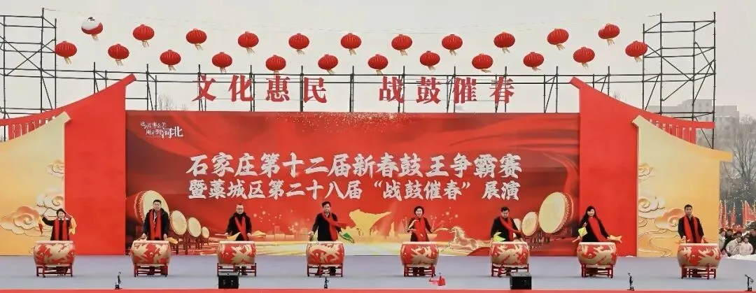 骐骥踏春启新程,鼓震长空竞风华!2026年3月2日(农历正月十四)下午,石家庄第十二届新春鼓王争霸赛在藁城区人民广场精彩落幕。来自全市13个县(市、区)的14支鼓乐队伍同台竞技、各展绝技,以激昂鼓点传承燕赵文脉,以创新表达激活非遗活力,为现场观众献上了一场兼具传统底蕴与时代气息的文化盛宴。
