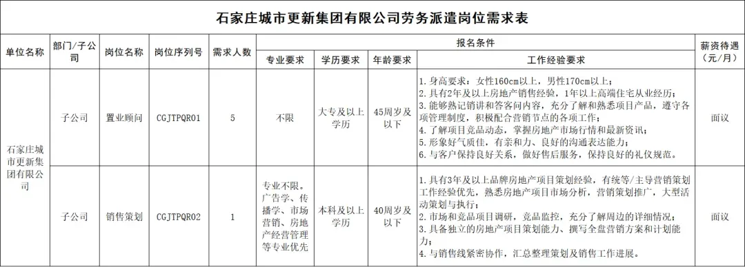 石家庄城市更新集团有限公司劳务派遣制人员招聘6人公告