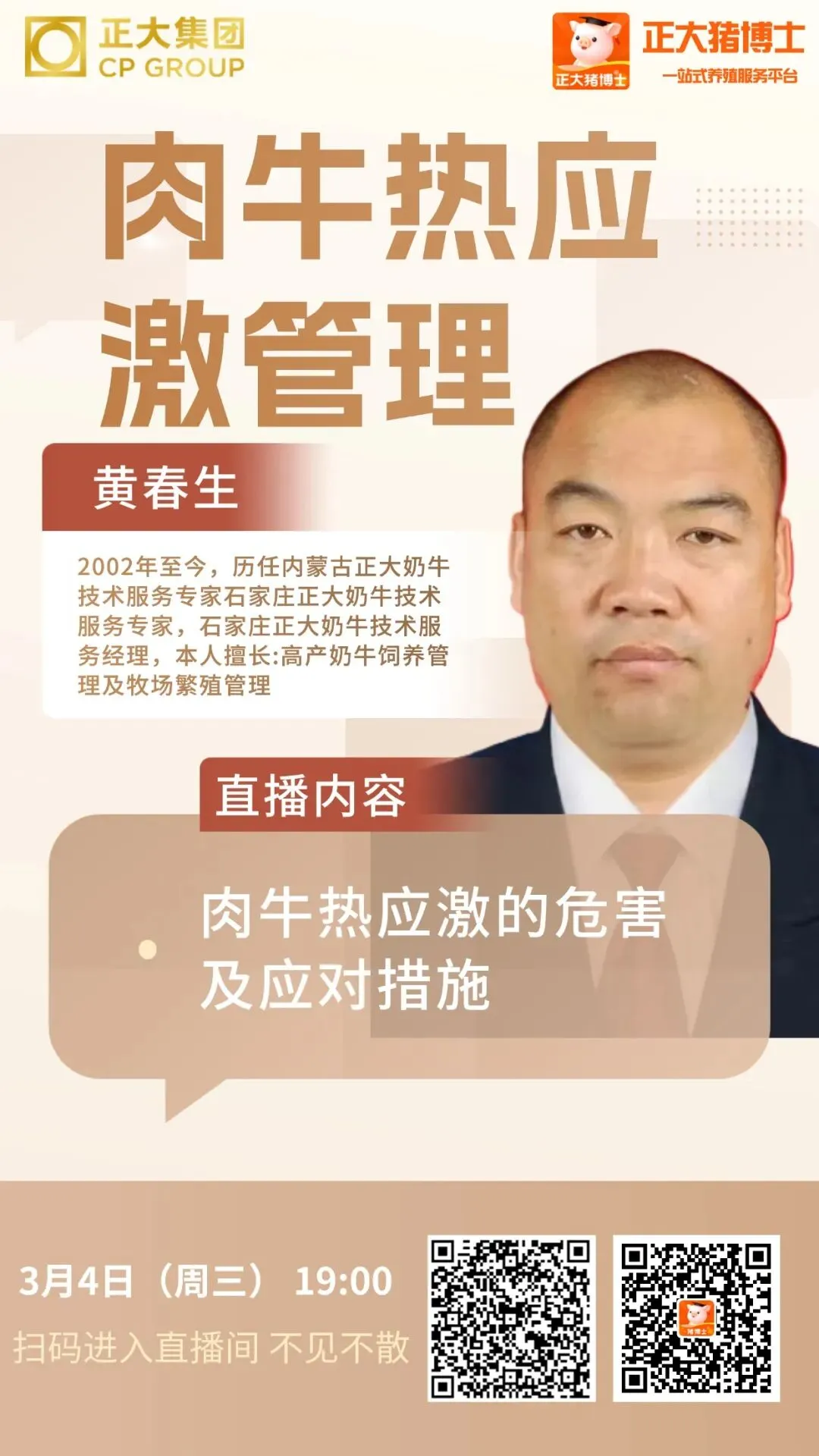 明晚19点,由石家庄正大黄春生老师为大家分享《肉牛热应激管理》