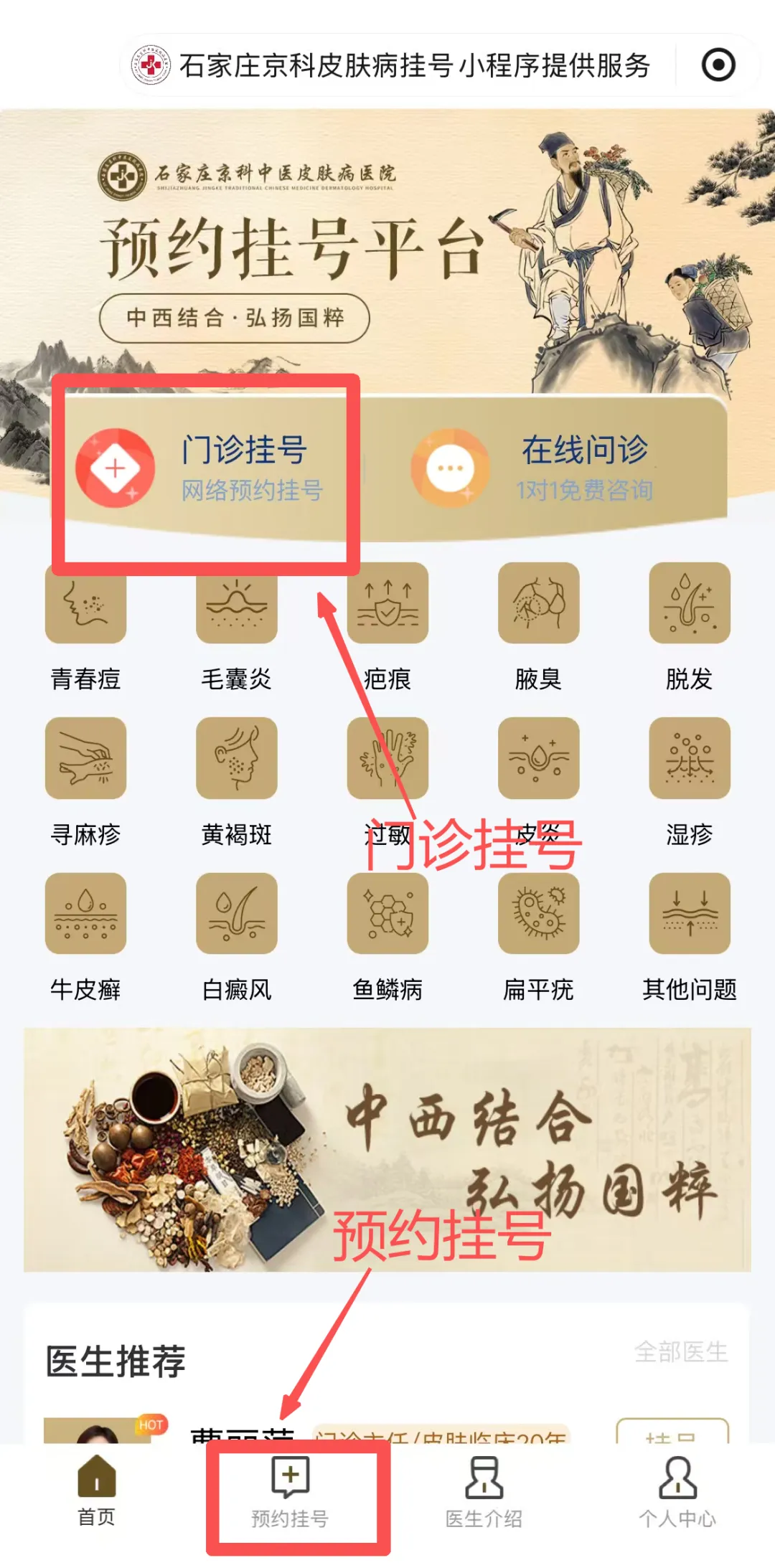 石家庄京科中医皮肤病医院微信公众号 + 小程序双渠道在线预约已全面开通!