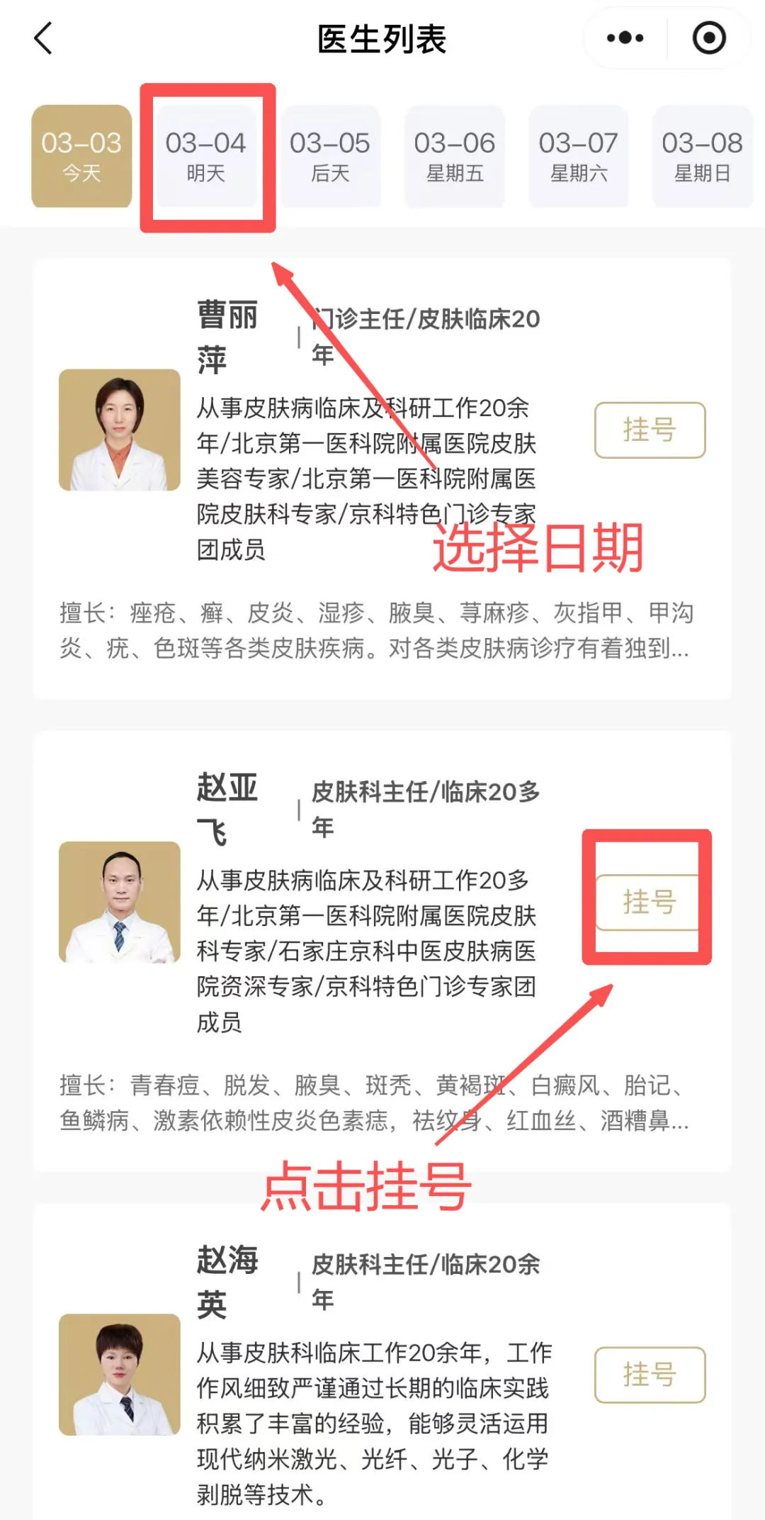 (点击医生头像可查看医生详情)
