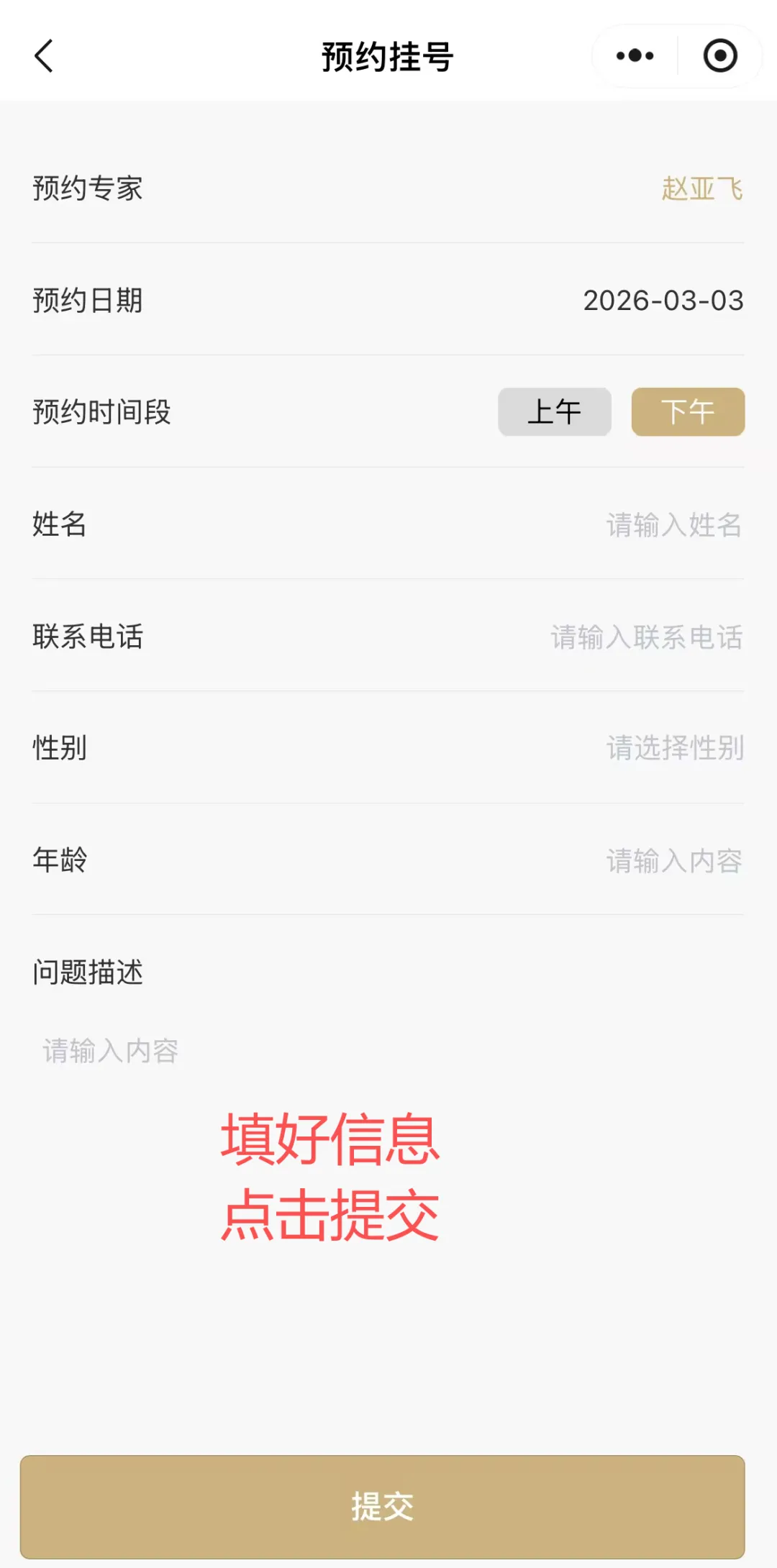 选择就诊日期和心仪医生,点击【挂号】,填写个人信息及健康问题描述。