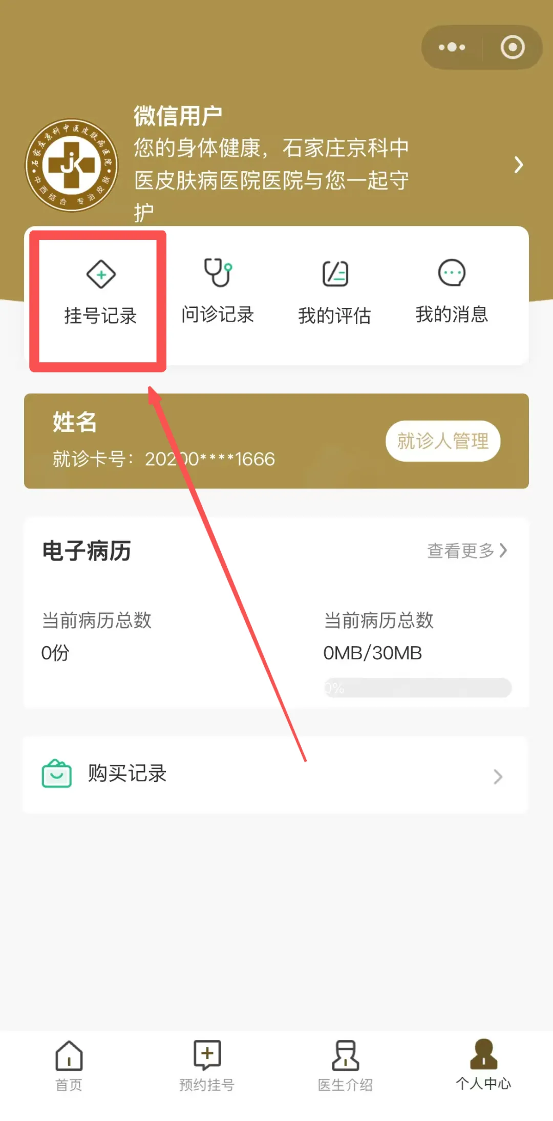 在小程序主页下方“个人中心”,点击挂号记录,即可查看。