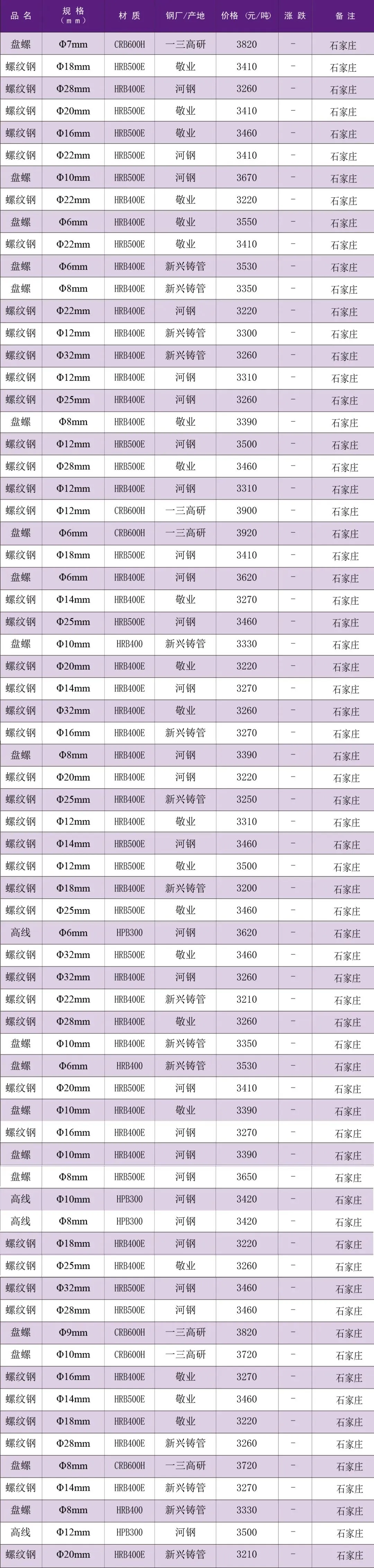 【每日一价】3月3日石家庄市场建筑钢材价格行情