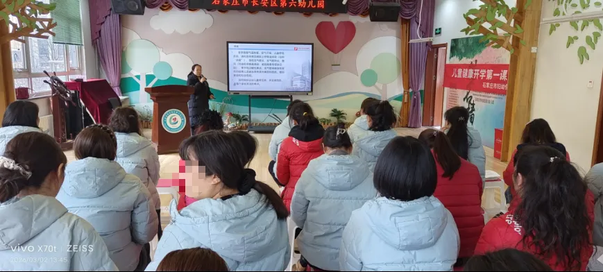 为筑牢校园健康防线,开好儿童健康“开学第一课”,3月2日,石家庄市长安区第六幼儿园特邀石家庄市妇幼保健院儿二科史军然主任,为园内50余名保育员及老师开展《冬春季节如何做好宝宝常见病预防》专题健康培训。