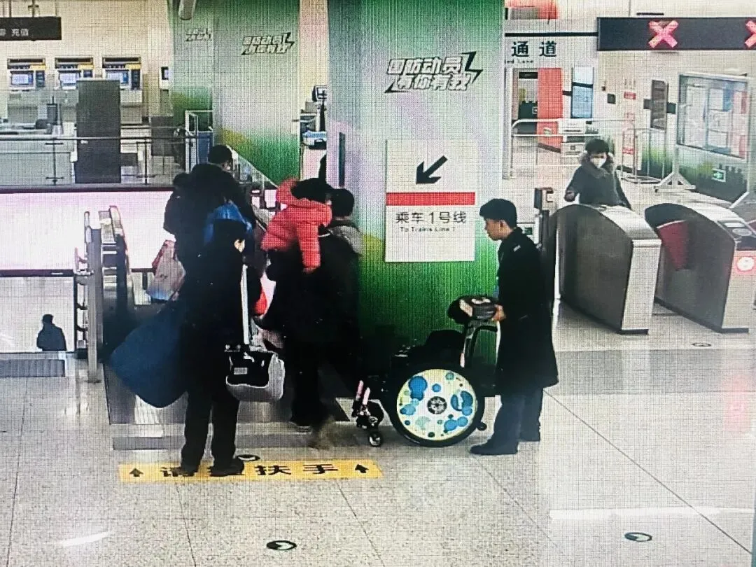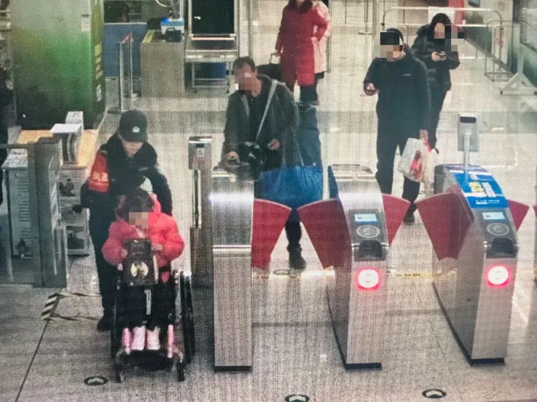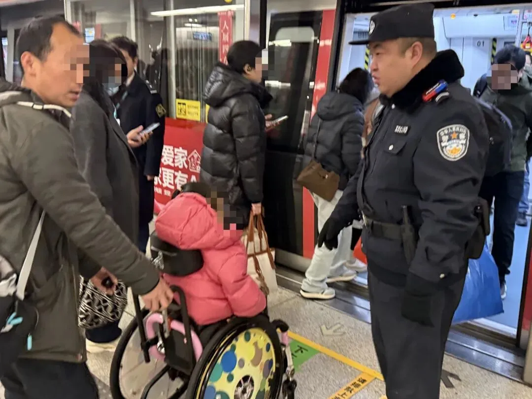 当日7时13分,正值早高峰时段。市公安局轨道交通分局警员高丽云,在长城桥地铁站视频巡查时敏锐地发现,东厅进站闸机处有一名乘客推着轮椅,车上坐着一名小女孩,身旁还堆满了大包小裹,行动显得十分艰难。