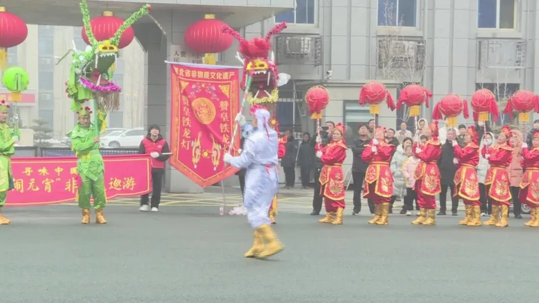 省级非物质文化遗产“赞皇铁龙灯” 率先登场,舞龙者们手持龙球变幻出各种奇妙的姿态,展现出“铁骨龙魂”的独特魅力。