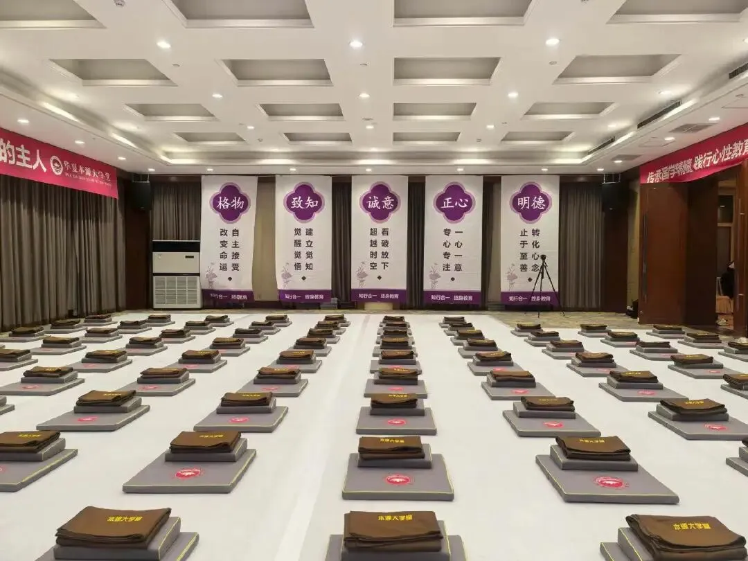 宽敞而明亮的室内,打着暖和的空调,入目是整齐排列的禅垫,四周拉着简单又醒目的横幅。列队进入教室,我坐在了第一排,心情雀跃而激动,又是久违的集体共学,又将迎来生命增上的美好状态。