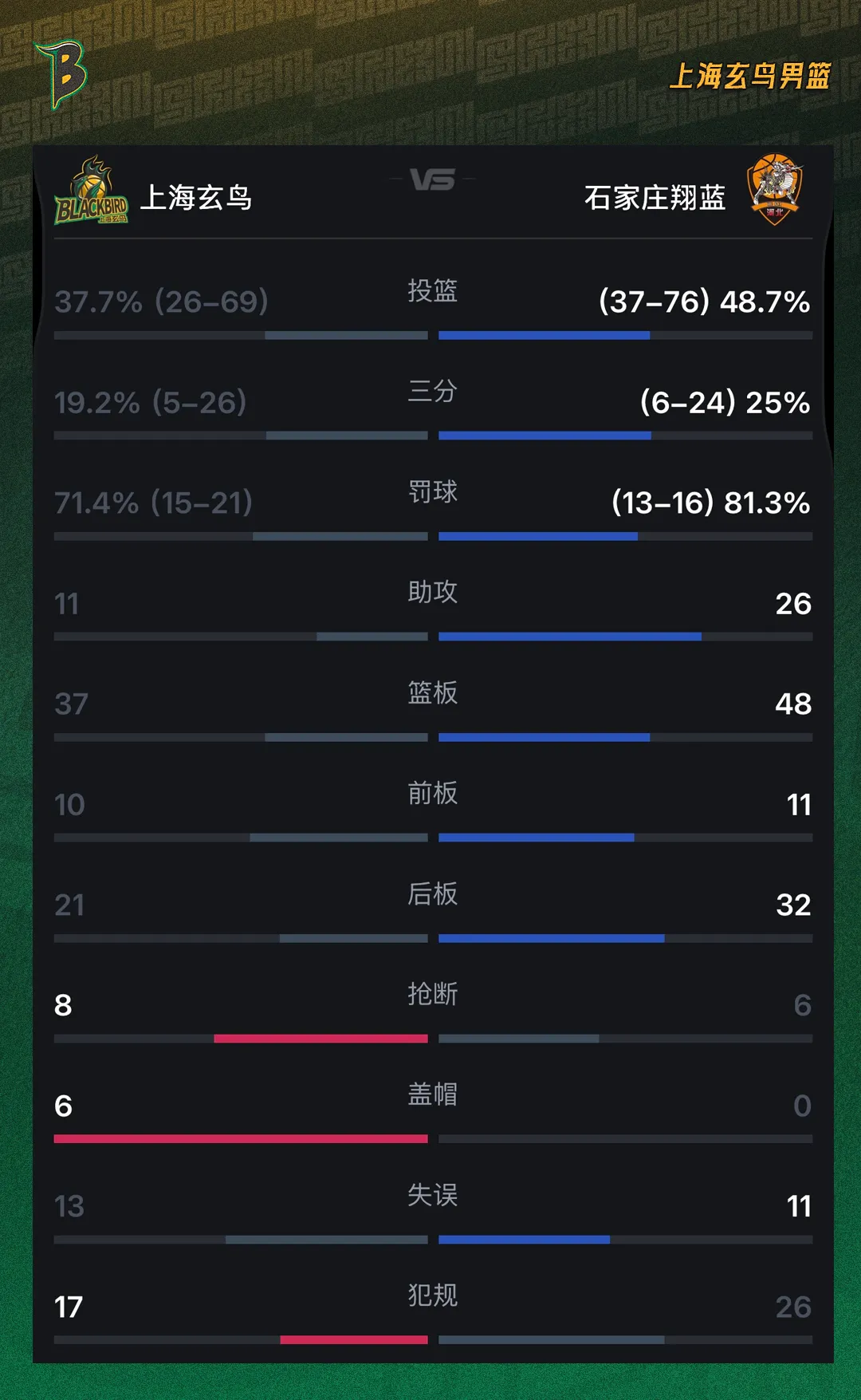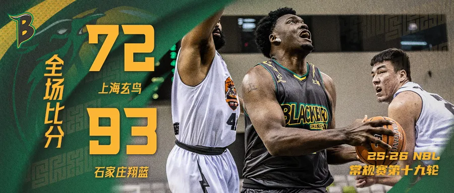 3月3日,2025-2026 NBL赛季常规赛第19轮,上海玄鸟男篮主场 72:93 不敌石家庄翔蓝。
