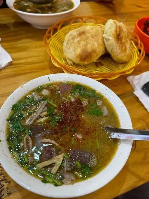 特色推荐:羊杂汤这儿的羊杂汤讲究个“料足”。羊肚、羊肺、羊肠切得细细的,在老汤里翻滚。盛出来时,必须加一勺红油辣子,再淋点陈醋。汤一喝,汗一出,浑身通透,那叫一个舒坦。