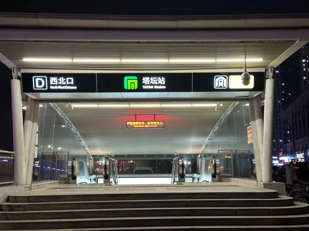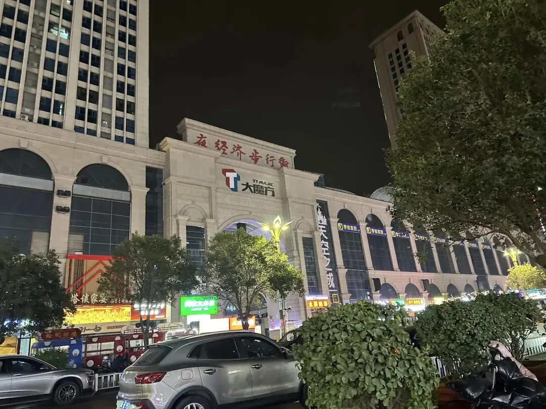 在塔坛站附近有一个夜经济步行街,每到夜晚这里的小吃摊特别多。从这里打车去吃饼卷肉,没想到才花九毛钱打的费。