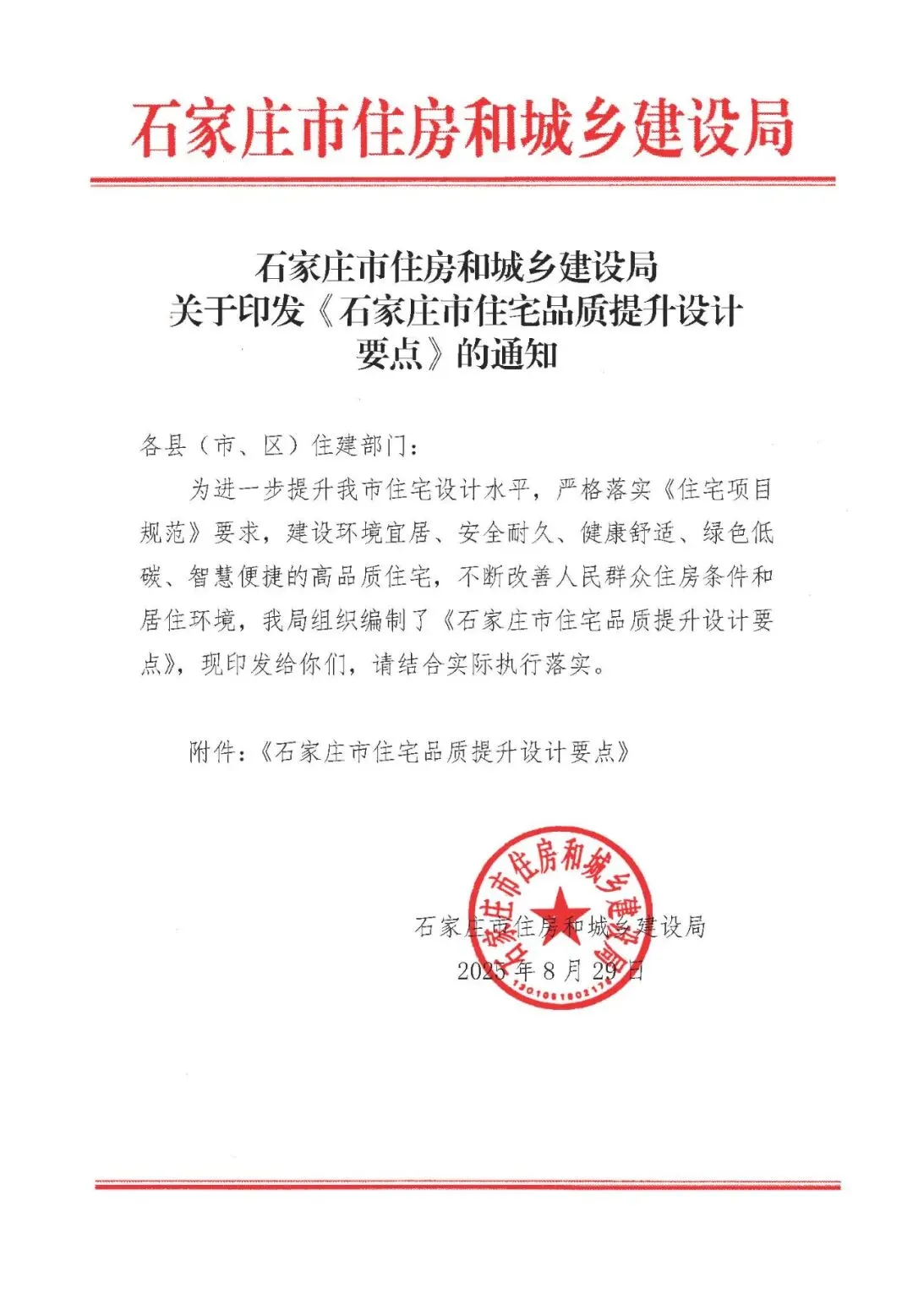 >石家庄|关于印发《石家庄市住宅品质提升设计要点》的通知