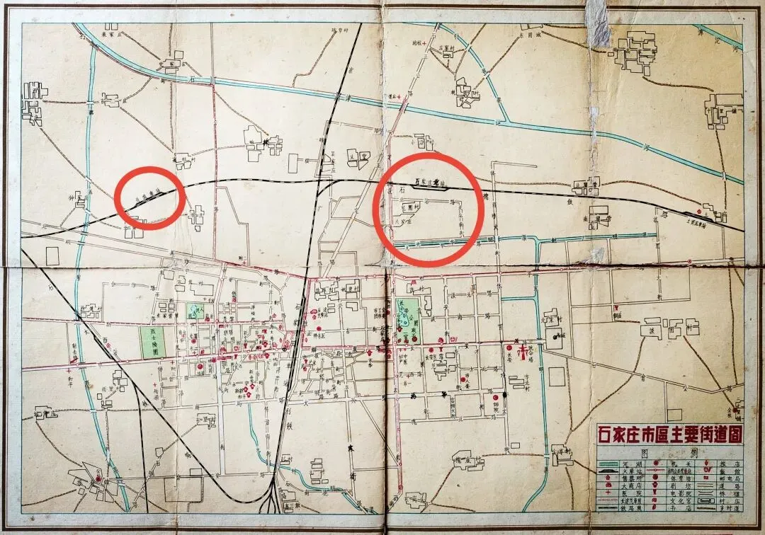 1957年石家庄市市区图没有显示新华区北部有铁路线和北焦车站等信息。八家庄北侧附近的石德铁路线也未设置石家庄北站。