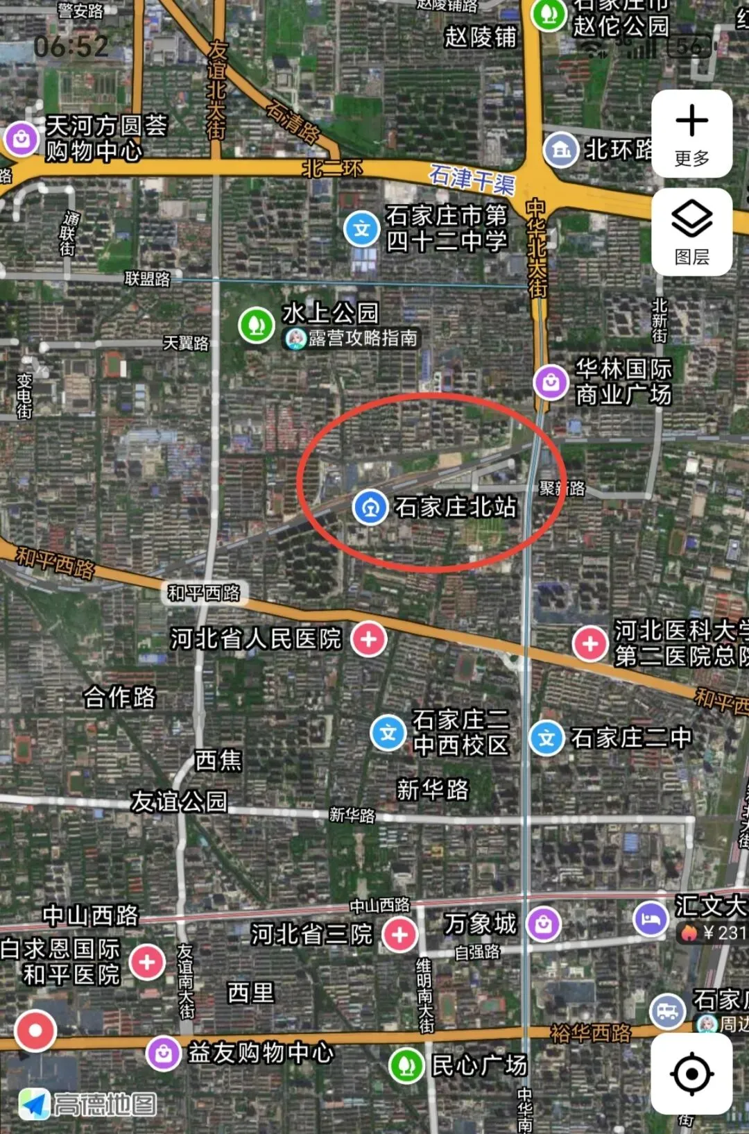 ▼2026年3月高德卫星图显示的石家庄北站位置