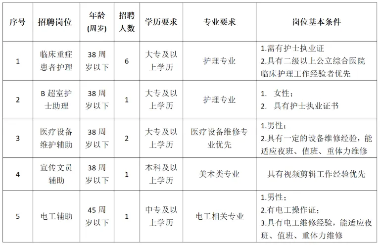 根据需要,现面向社会公开招聘驻医院工作人员11名。现将具体招聘流程公告如下: