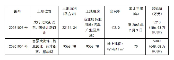 先上硬核干货,两宗地各有分工,主打一个精准发力。003 号地块扎根太行北大街以东、南杨北路以北,是专属汽车产业园的商业服务业用地,面积 22134.34㎡,容积率控制在 1.0-2.0,起始价 5210 万元,折合 156.93 万元 / 亩,出让年限至 2063 年,妥妥的为汽车产业配套添砖加瓦,产城融合这步棋走得明明白白。
