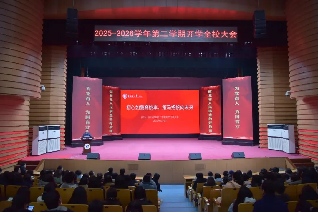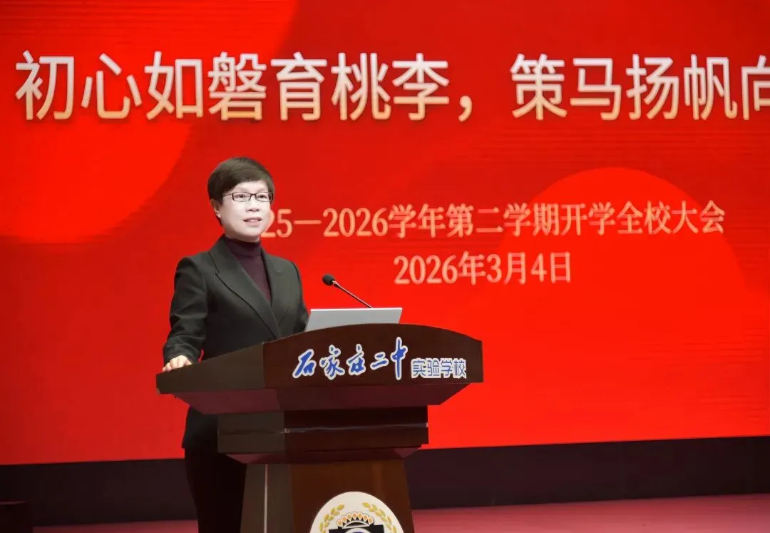 2026年3月4日上午9:00,石家庄二中实验学校全体教职工齐聚春蕾剧院,隆重召开2025-2026学年第二学期开学大会。