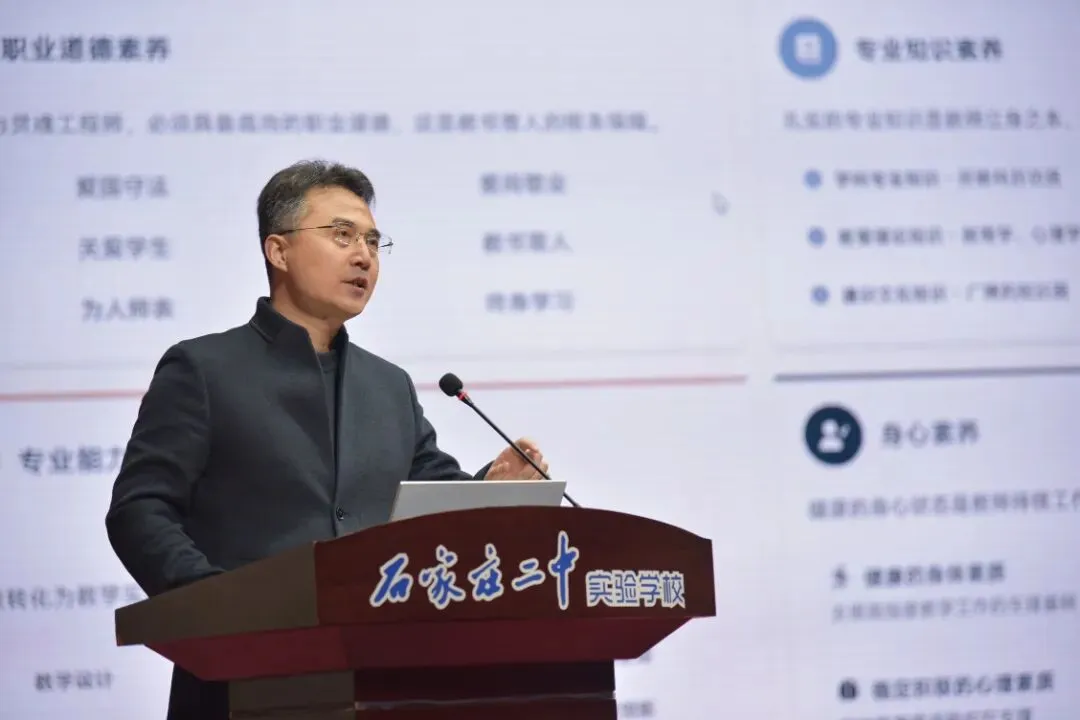 陈洪星副校长以“以教师的专业化成长带动学校高质量发展”为主题作分享,明确学校高质量发展要坚持以学生为中心、以质量为根本、以规范为底线、以可持续为目标。他从师德、专业知识、专业能力、身心四大素养阐释教师专业成长维度,强调教学要遵循学生身心发展、认知、高考考向三大规律,并结合2025年高考学科素养数据,指出学生在创新能力、学科应用上还有很大的潜力,教师要将理念落实到教学各环节,共同谱写学校教育高质量发展新篇章。