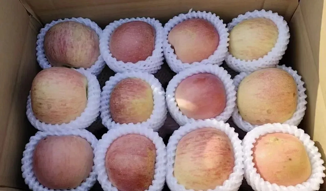 每一颗苹果成熟采摘后,我们都会人工精挑细选,只留下果形端正、色泽鲜亮、果肉脆甜的优质大果。装箱前,每一颗果子都会细心套上防护膜,最大程度保证新鲜与完整。