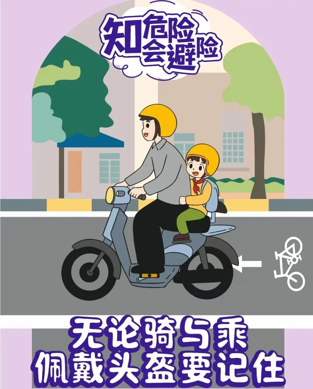 1.戴好头盔。驾驶摩托车、电动自行车接送孩子的家长一定要和孩子都佩戴好安全头盔。