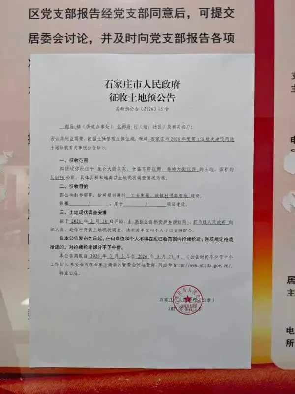 石家庄市人民政府征收土地预公告