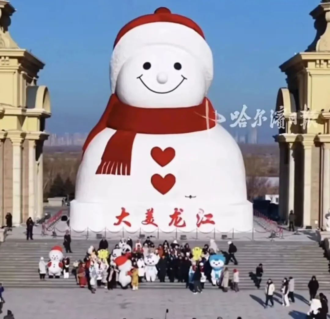 4.哈尔滨19米高网红大雪人打卡78天终于“下班”。