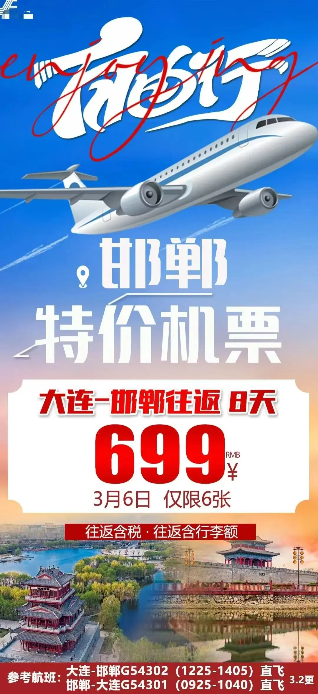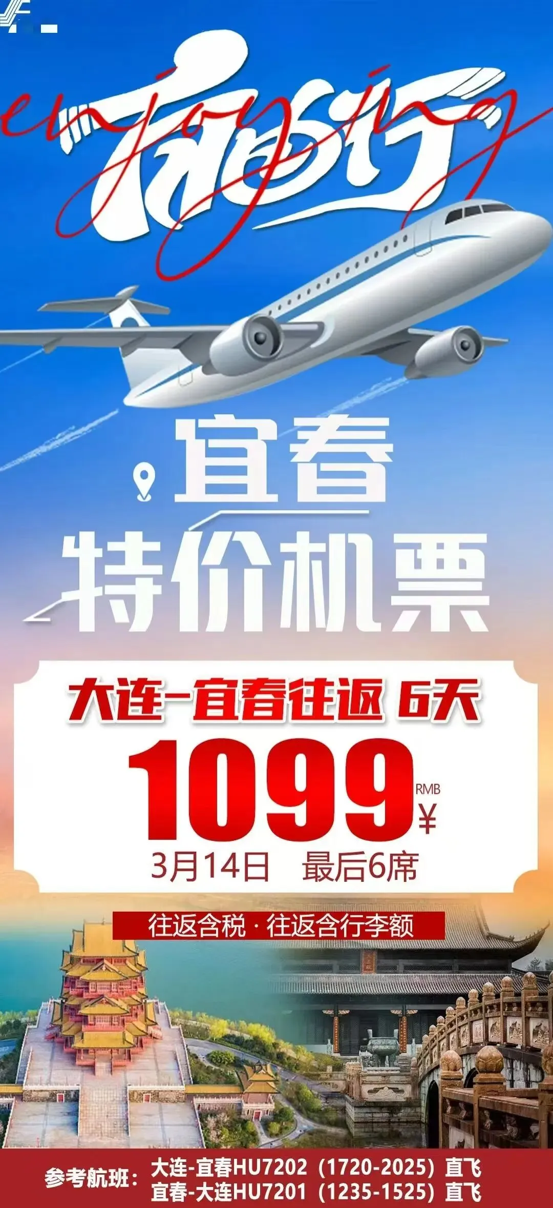 需要特价机票请联系大连户外亲子客服三