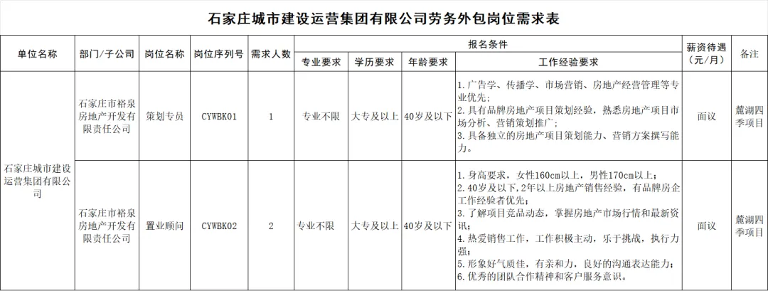 石家庄市国经人力资源管理有限公司是石家庄城市建设运营集团有限公司劳务外包业务承接单位,现面向社会公开招聘劳务外包人员3名,具体招聘流程设定如下: