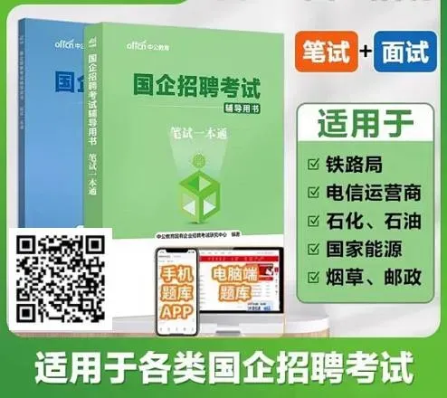 国企笔试备考一本通,含公基+职测+国企概况,以及专业科目教材与历年试卷,扫描上方图片了解详情。