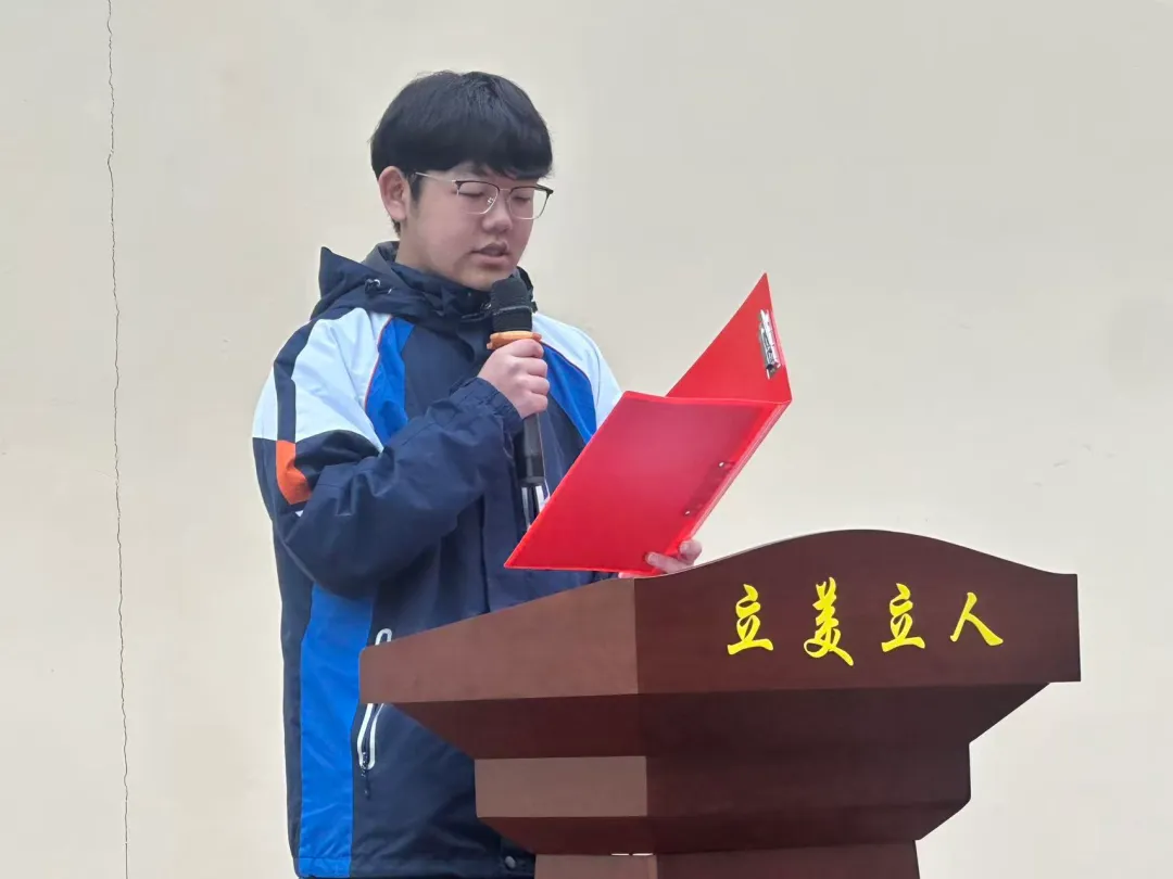 学生代表L2402班郭岩东同学登台发言,他用真挚的话语表达了对校园的热爱,分享了学习心得与成长感悟,更抒发了新学期脚踏实地、奋勇争先的坚定决心,展现了立美学子朝气蓬勃、积极向上的精神风貌。