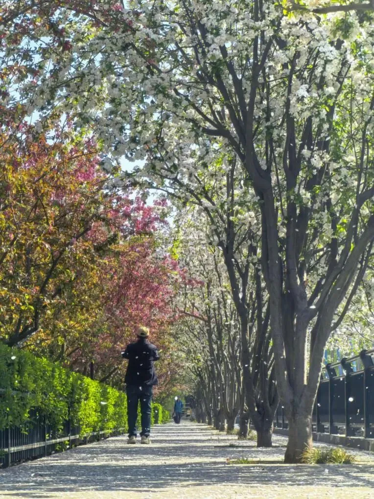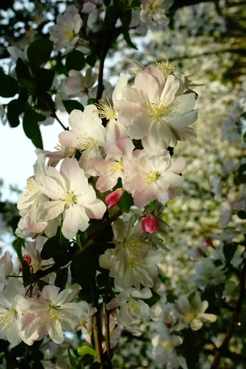可赏花卉:北美海棠,花期:3月下旬至4月