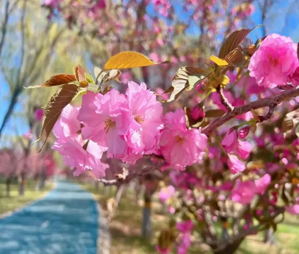 可赏花卉:晚樱,花期:4月中下旬