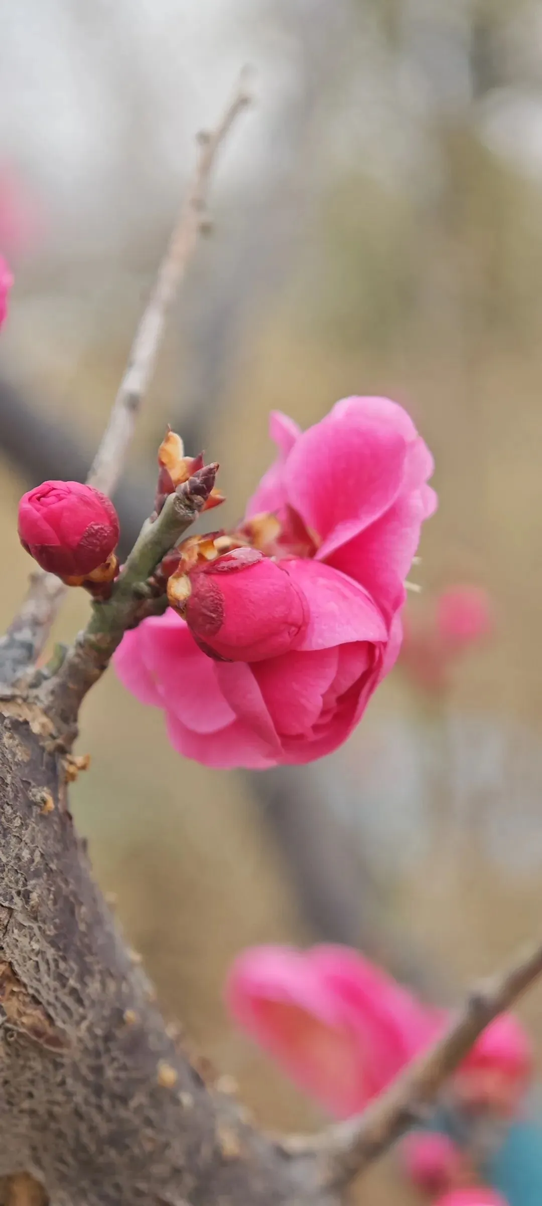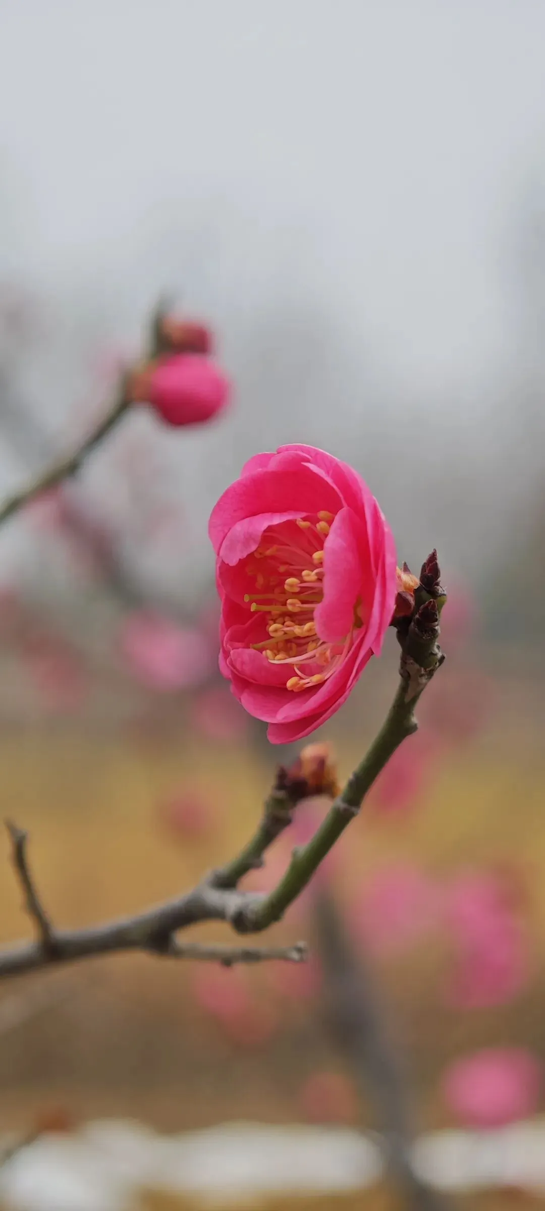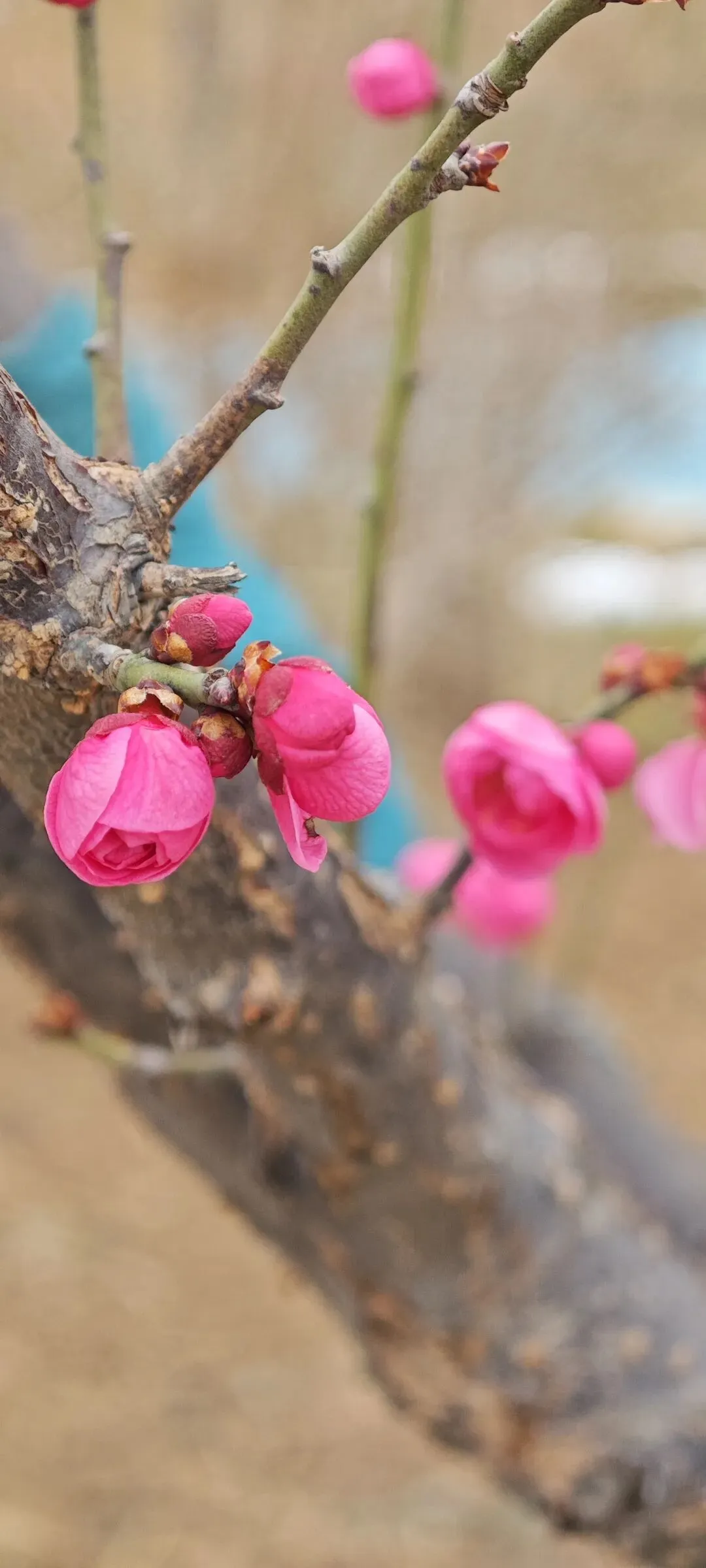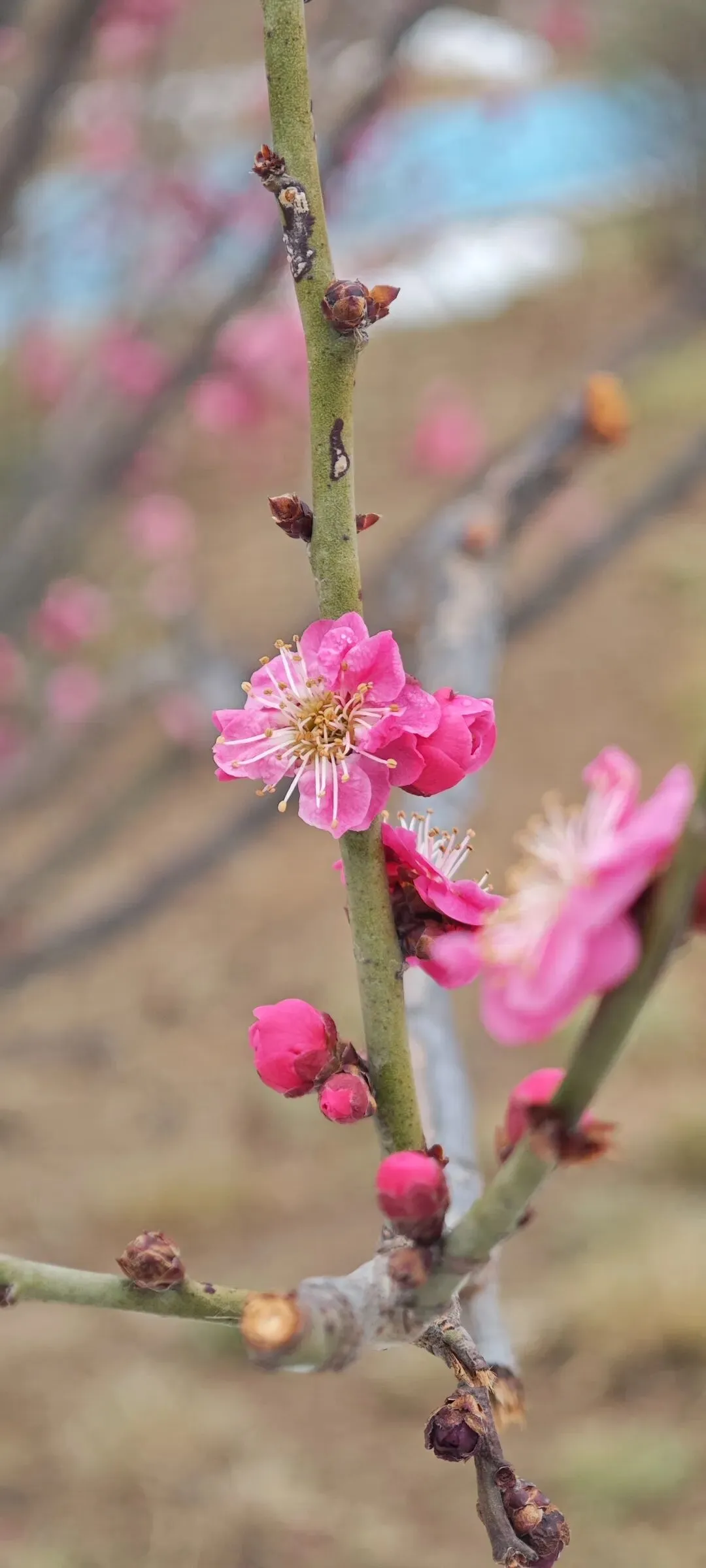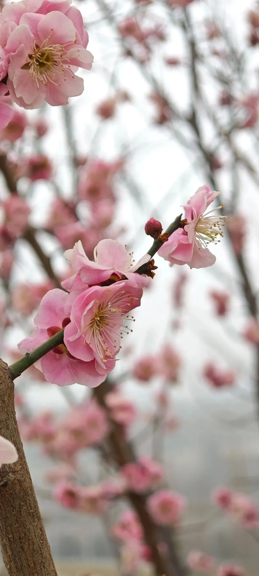 我沿着山顶边缘慢慢走,看到不少粉色梅花,忍不住走近,用手机记录下他们的俏模样。