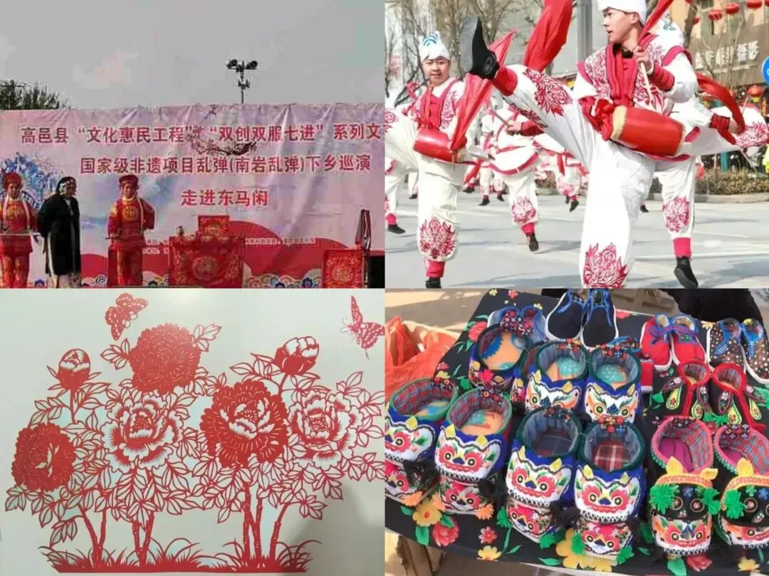 高邑拥有南岩乱弹、高邑腰鼓、庄头剪纸、哨营猫头靴等多项非遗项目,民间技艺代代相传,构成鲜活生动的乡土文化画卷。