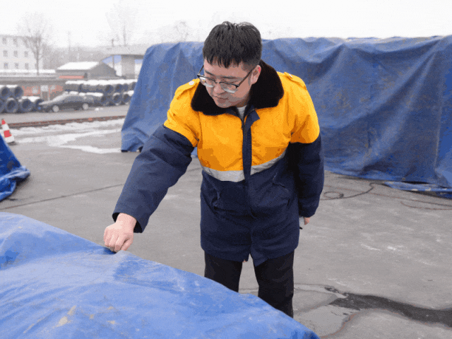 为应对降雪天气,辛集营业部组织干部职工及装卸人员,对站台、货场易湿损货物进行紧急苫盖防护。同时加大现场巡查力度,检查篷布加固绑扎及覆盖情况,确保货物防护到位,保障运输安全有序。(辛集营业部供稿)