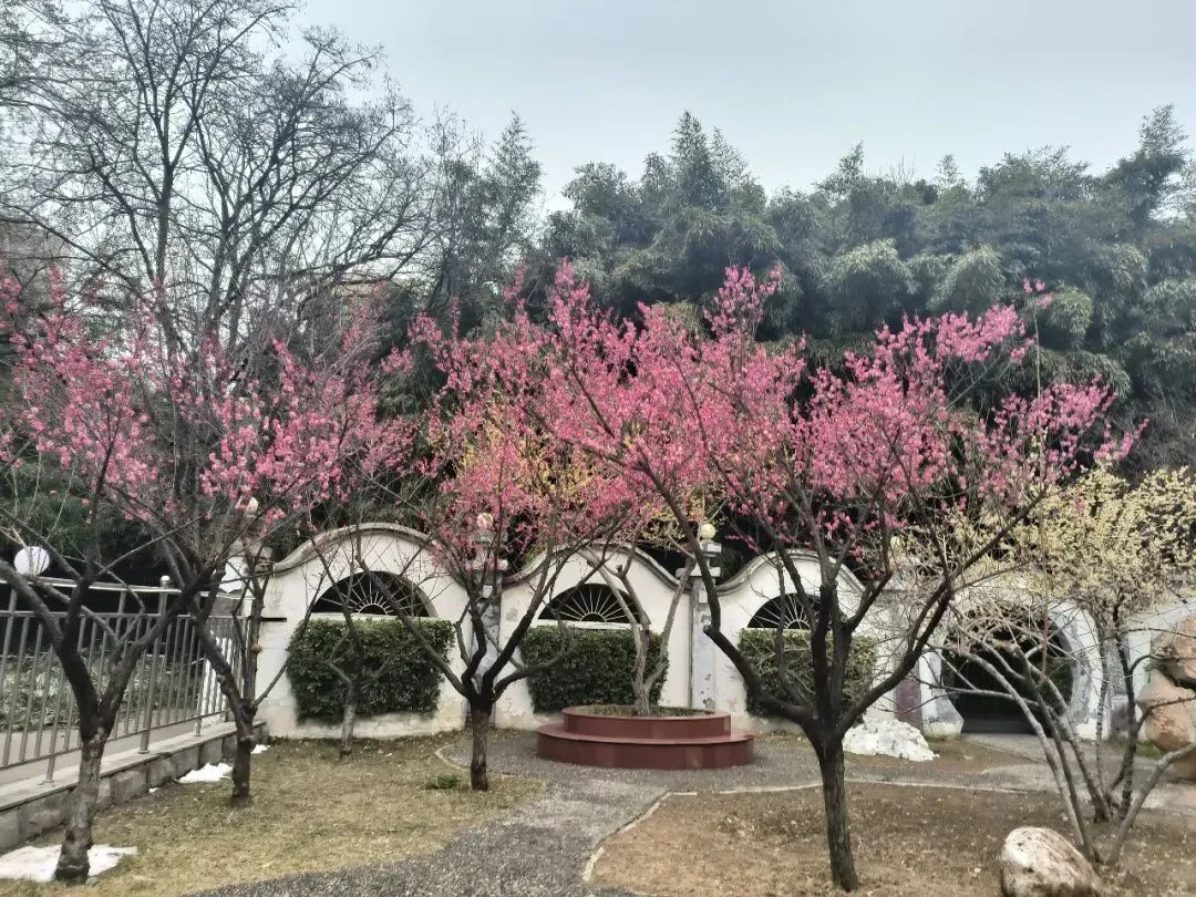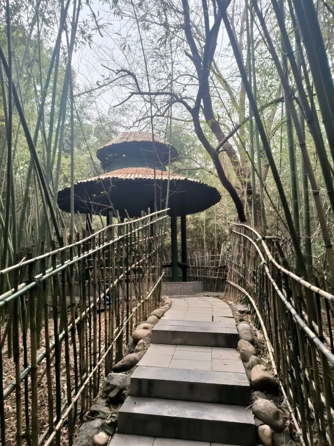 进入园区,穿过竹林,才真正体会到那种高耸入云、遮天蔽日的感觉。这里的竹林应该是我见过的最茂密也最挺拔的了,而且这里的竹子品种非常多,单是看园林中的指示牌介绍的就有“早园竹”“慈竹”“黄槽刚竹”“刚竹”“慧竹”“筠竹”“金镶玉竹”等等。只是指示牌是用不锈钢板制作的,不仅反光,而且有些字迹也是模糊不清了,所以,对于每一类竹子都有哪些特点,并不能清晰的了解。只是穿行于竹林间,会让人感觉着特别静谧,是个安静沉思、闭目养神的地方。在竹林中还有两个赏景亭,不过也已经被竹林覆盖,从远处一般是看不见的。沿着竹林间的小道,走到公园的南部,就会看到有一个小院,中间是石砌的月亮门,从门外就看到有几棵树开着红花,还有几棵树开着白绿的花,也有一棵开着黄花。走进去细瞧,才看出这些是红梅、绿梅和蜡梅,几种颜色的花融合在一起,非常漂亮,仿佛进入世外桃源,虽然这里的不是桃花。而且,在高高的竹林映衬下更是格外鲜艳夺目。还有一棵树开的应该是杏花,粉白花瓣儿,新出芽的红叶,淡黄的花蕊,鲜嫩欲滴,尽显春花之烂漫。赏过梅花,看到园区外有一个游泳池,水质清亮,估计是新放的水,几个工人师傅正在岸边忙乎着,不知道是准备营业还是换水洗池。看介绍,这里常年举办游泳培训班、招收学员。详情可自行咨询,本文只做简要介绍而已,无“托儿”之嫌疑。在公园游览的时候,看到有工人师傅在清理干枯的竹竿,在与师傅聊天时得知,这些已经枯干的竹子每年春天都要清理干净,以便于其他竹子的生长。师傅还问我要不要竹竿。我说,“”我非常想要,只是公交车不让带竹竿上车”。确实,看到那些已经枯黄的竹竿,真的很想要几根,回来给蔬菜搭个架一定是很好的。遗憾的是离家太远了,如果是骑车,一定带回来几根竹竿的。在公园的南头,也有很多的竹子躺在地上,这些竹子,有的已经枯黄、有的虽然表皮还是绿的,但枝干上有裂缝,看来也是要被清理掉的。看到有个师傅正拿着锯子在把竹子锯成了竹筒,就问师傅,“拿这个竹筒做什么?”师傅说,“可以当酒杯、也可以当烟灰缸”。我说,“我觉得当笔筒最好”。于是就找了一段相对好一点的竹子,请求师傅给锯成了竹筒,拿回家来做笔筒使用,感觉着还是很好的。在公园里还发现了一棵圆柏树,上面长出的不知道是叶子还是穗穗,看上去倒是很好看的。友谊公园紧依民心河,在民心河的东岸就是健身步道。顺着健身步道可以从新华路通往中山西路。而友谊公园在友谊大街上还有个出口,但不能直接通往中山西路。因为友谊公园的南面是消防器材厂,而且友谊大街正在建设地铁5号线,其西侧都有围挡。想要进入公园还是建议从新华路或中山西路进入。友谊公园面积不大,有的地图上都没有显示,但这里竹林确实值得一看。常年青绿,遮天蔽日,估计夏天是个乘凉的好去处。不过现在来友谊公园还可以赏梅花、看杏花,也是消遣旅游的好时机。这里交通也比较方便,新华路上有326路、9路、38路公交车路过,中山西路上有地铁1号线和1路公交车路过,可自行选择出行。如果你还看到哪里有更好的风景,可以来评论区分享分享。