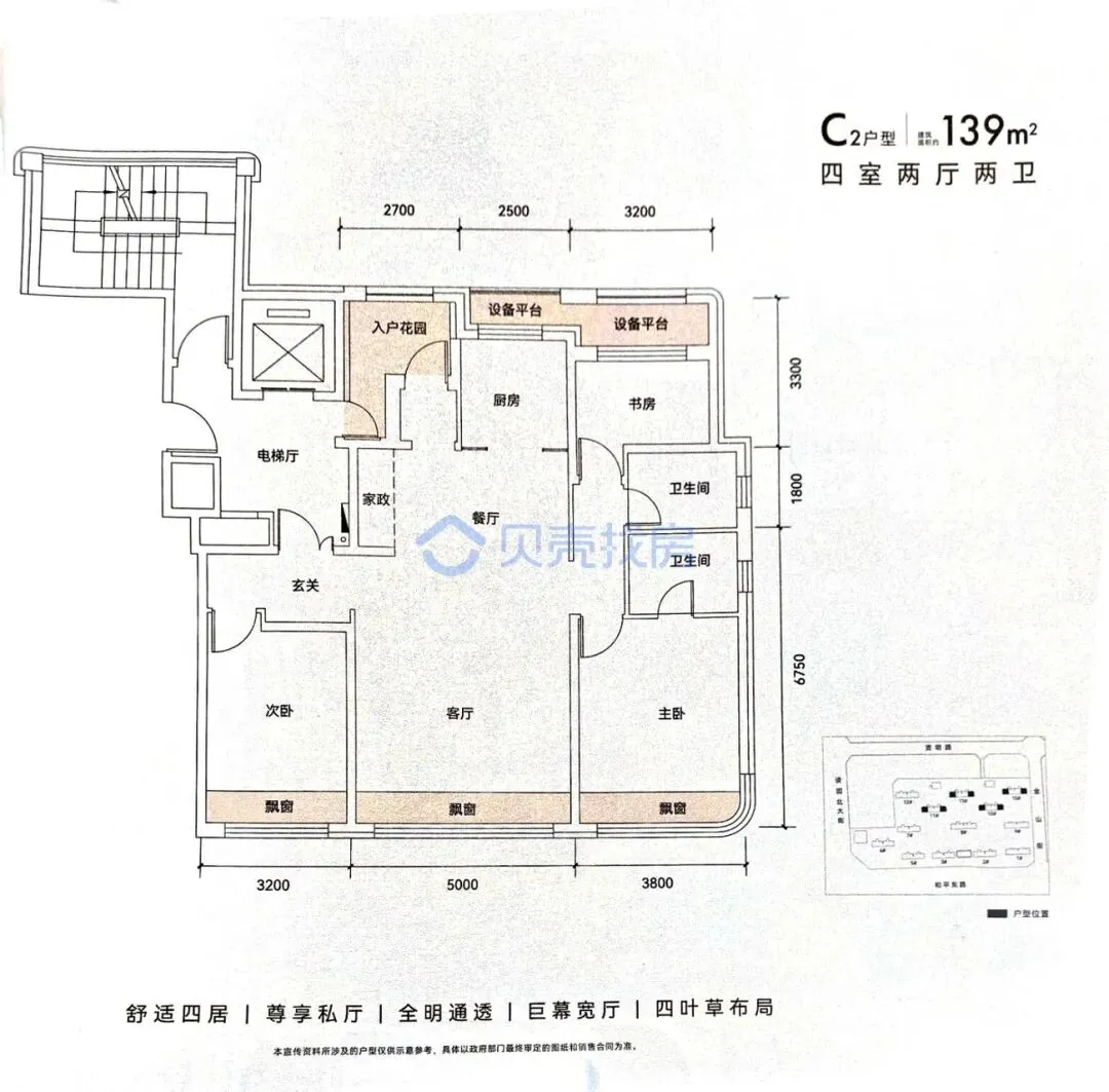 • 玖瑞府(凯琦):户型为114 - 150㎡的四居室,最小的114㎡也设计为四叶草户型,层高3.15米,功能性强,适合四口之家一步到位。